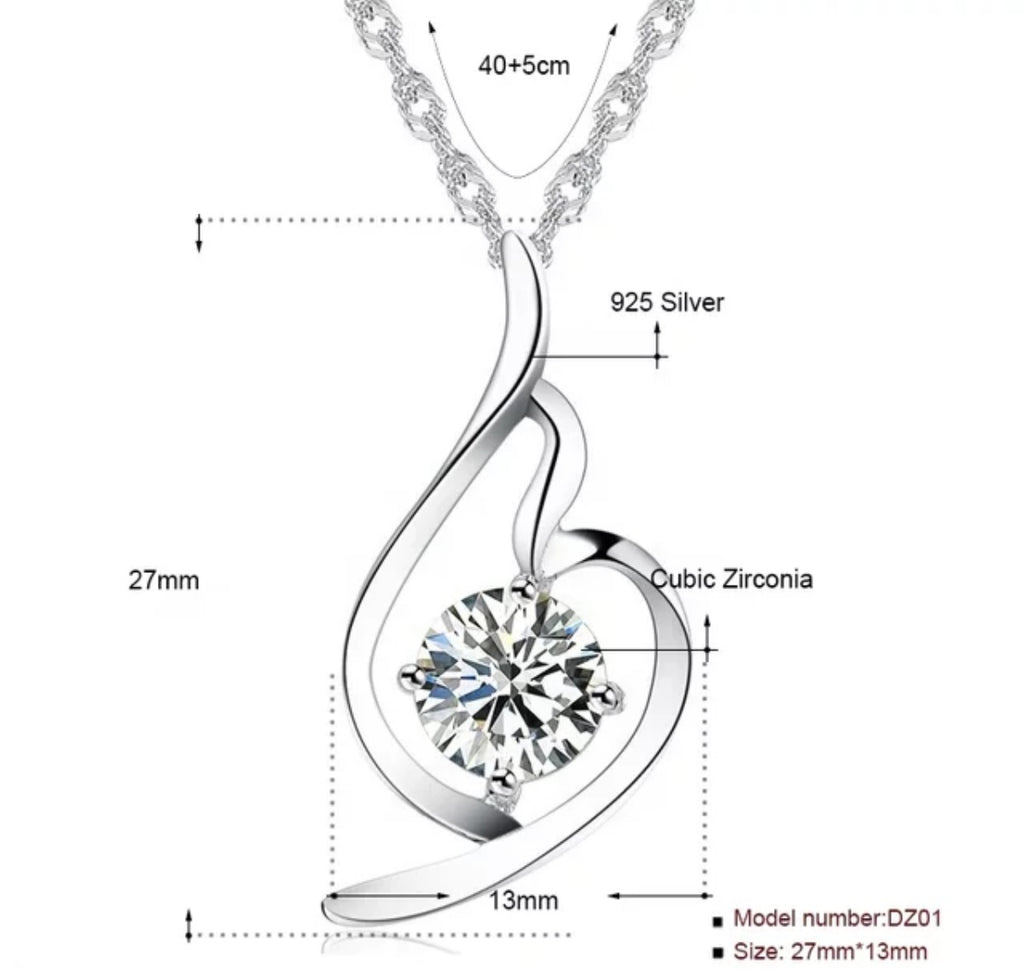 This gorgeous necklace is set in sterling silver. The gemstone are crystals. Chain size 16-18" inch long. Pendant size is 27mm long and 13mm wide. It comes in two colors Amethyst and clear crystals. In stock.
