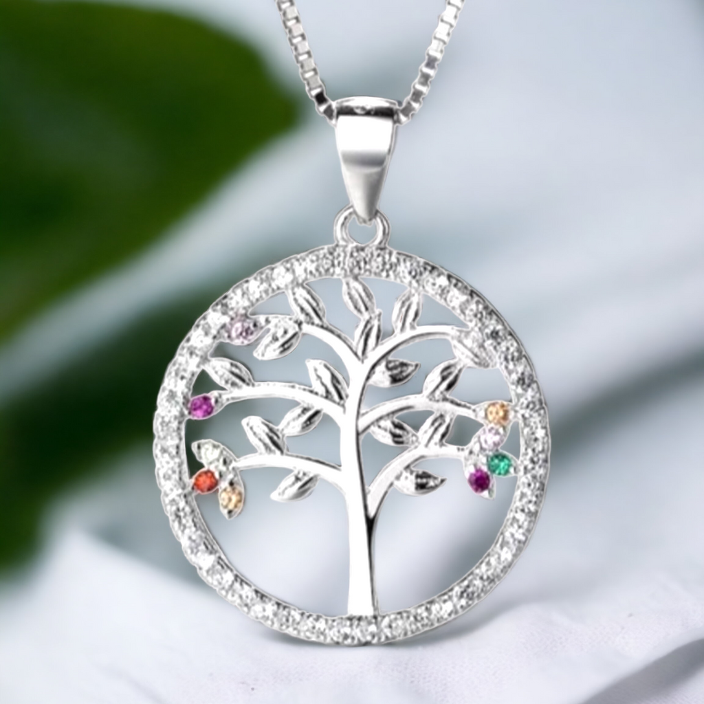 925 Sterling Silver necklace with cubic zirconia stones in different colors. Citrine, amethyst, garnet cubic ziirconia stones (lab made). 18" inch long chain. Round pendant. Nickel free. Do not tarnish.
