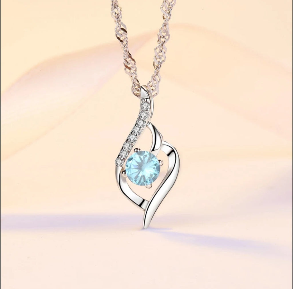 This beautiful cubic zirconia twist necklace is set in 925 sterling silver. The chain is 18" inch long for a perfect fit. The pendant size is 21mm long and 10mm wide. It is nickel free. The stones colors are white, amethyst, rose quartz and blue topaz. In Stock.