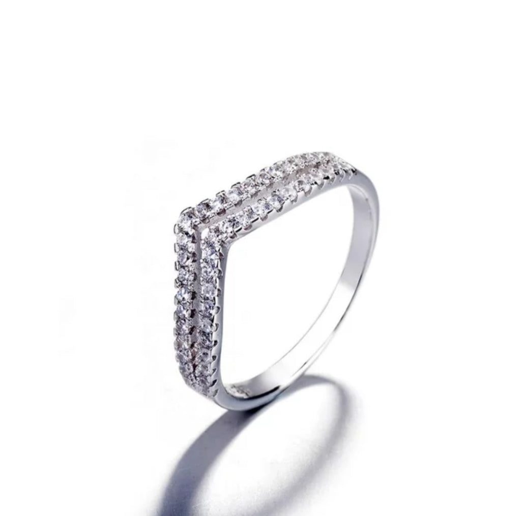 925 Sterling Silver Ring. Cubic zirconia stones. Pave setting. Sizes 6-7-8. Nickel free, do not tarnish. Lab created stone.