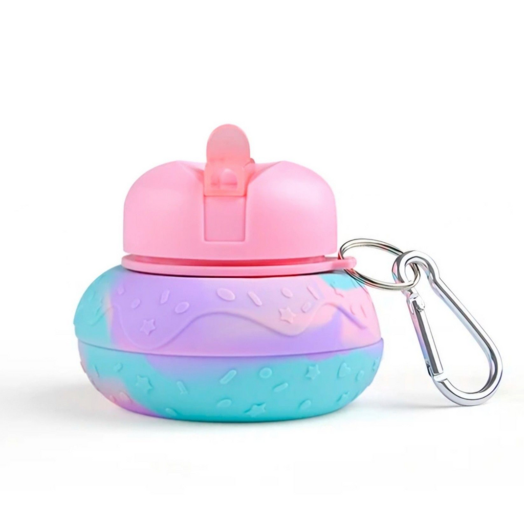 Stay hydrated in style with our Unicorn Swirl Collapsible Water Bottle, designed with a dreamy pastel swirl pattern in pink, purple, and turquoise. Made from BPA-free silicone, this lightweight bottle is flexible, leakproof, and space-saving – expanding when you need it and folding down when you don’t.